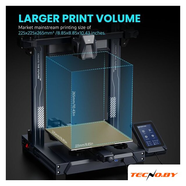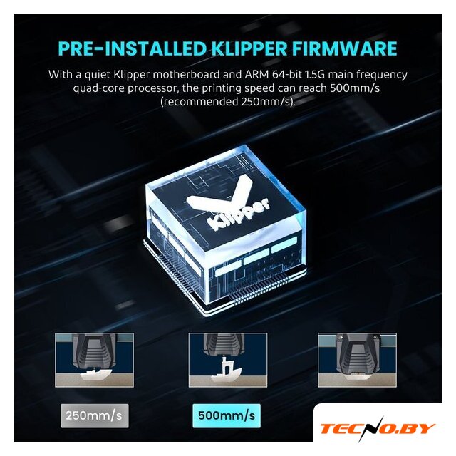 FDM принтер, открытый корпус, ABS/PLA/TPU/PETG, подогрев стола 110 °C, экструдер 260 °C, скорость 500 мм/с, область печати 220x220x250 мм