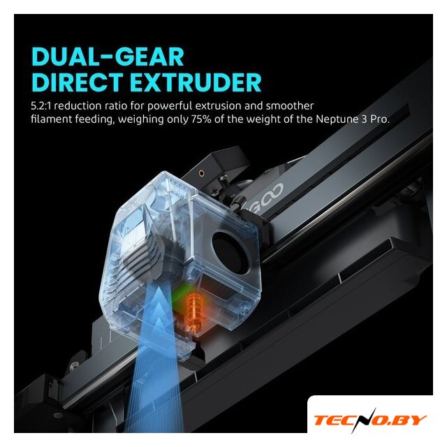 FDM принтер, 1 экструдер, открытый корпус, мин. слой 100 мкм, ABS/PLA/ASA/TPU/PETG 1.75 мм, подогрев стола 100 °C, экструдер 300 °C, скорость 500 мм/с, область печати 220x220x240 мм