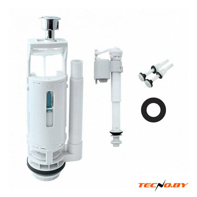 для бачка унитаза, пластик, нижний подвод воды, со стоп-функцией, белый/синий/хром