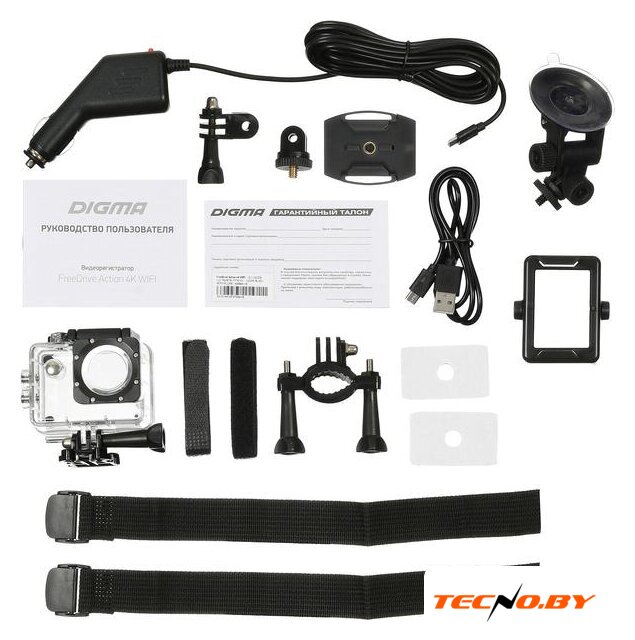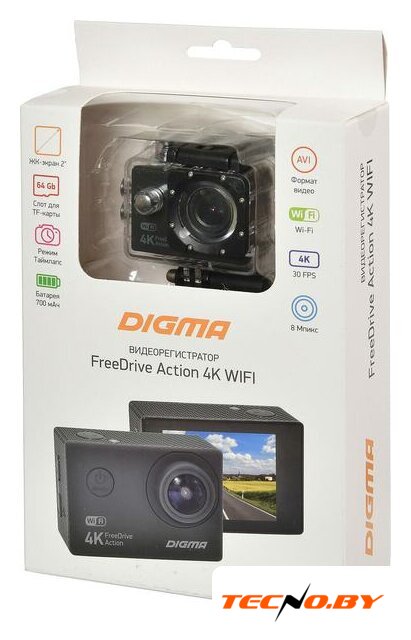 | Комплект поставки | - Видеорегистратор FreeDrive Action 4K WIFI- Крепление на лобовое стекло автомобиля- Водонепроницаемый бокс- Крепление на руль велосипеда- Основное крепление- Крепление для шлема- Адаптер-кронштейн 1- Адаптер-кронштейн 2- Повязка-бандаж- Дополнительный скотч 3М- Автомобильный адаптер питания- Батарея- Рамка- USB-кабель- Руководство пользователя- Гарантийный талон |