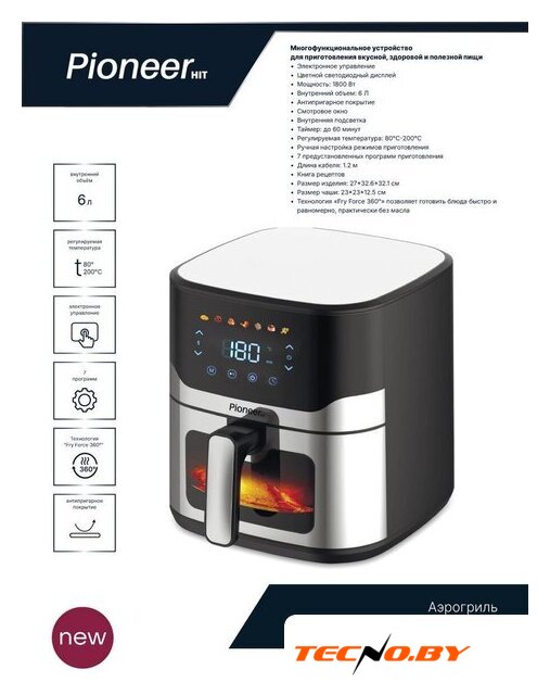 1350 Вт, металлический (ТЭН) нагревательный элемент, сенсорное управление, 7 л