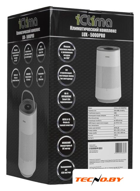 климатический комплекс, 4-ступ. фильтр, расход воды до 300 мл/ч, для помещения до 60 м², шум 58 дБ, питание: сеть, цвет белый