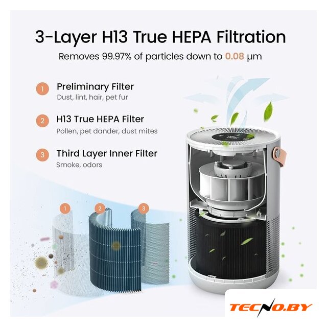 очиститель, 5-ступ. фильтр, расход воды до 300 мл/ч, для помещения до 40 м², фирменное приложение, шум 20 дБ, питание: сеть, цвет белый