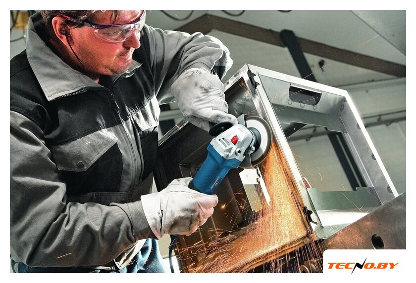 диаметр шлифкруга: 180 мм, 1300 Вт, 8500 об/мин холостого хода, 3.6 кг