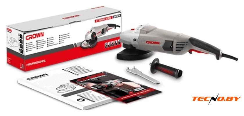 диаметр шлифкруга: 230 мм, 2200 Вт, 6600 об/мин холостого хода, 5.2 кг