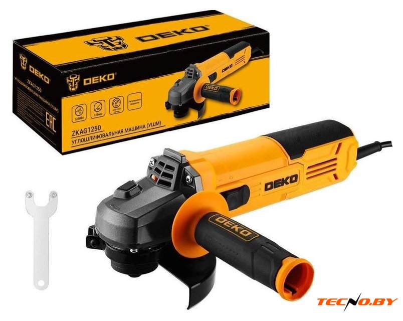 диаметр шлифкруга: 125 мм, 1100 Вт, 3000–11000 об/мин холостого хода, 2.3 кг