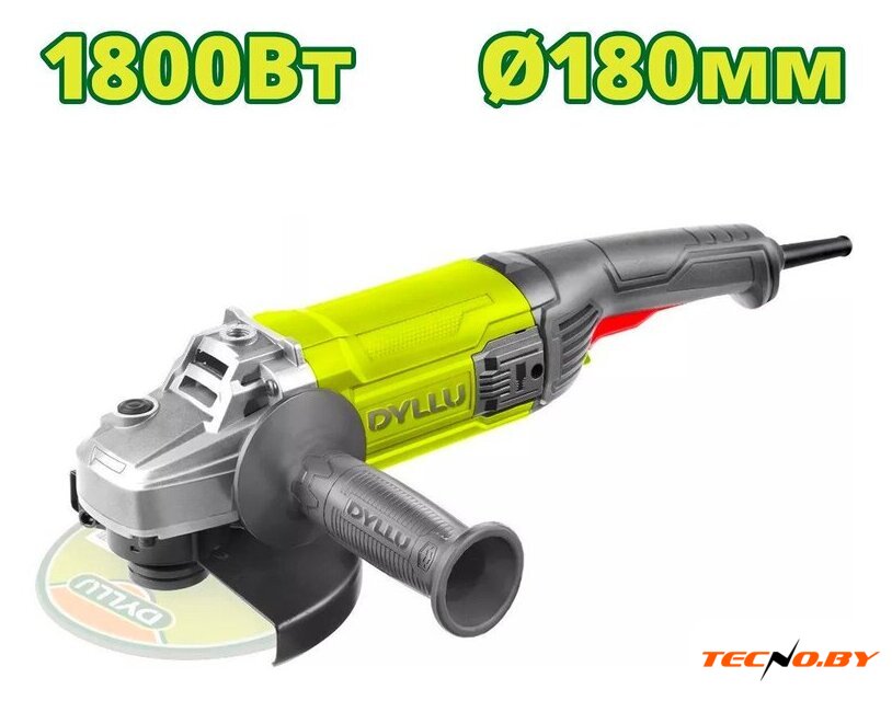диаметр шлифкруга: 180 мм, 1300 Вт, 8000 об/мин холостого хода, 3.6 кг
