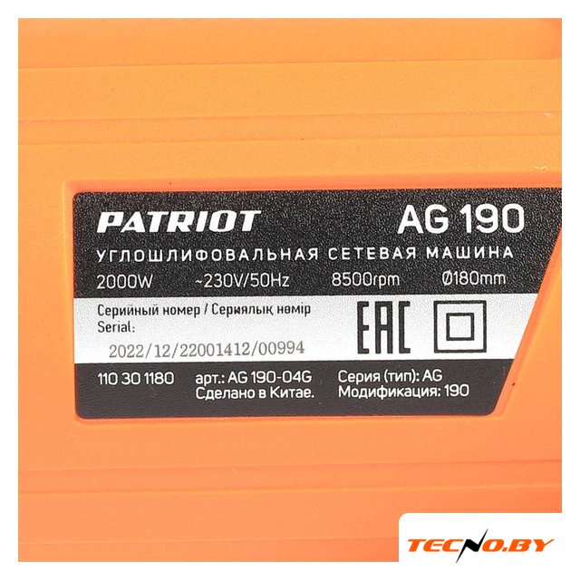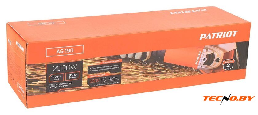 Комплект поставки | - Углошлифовальная машина- Защитный кожух диска- Боковая рукоятка- Комплект угольных щёток- Шестигранник- Ключ для затягивания стопорной гайки |