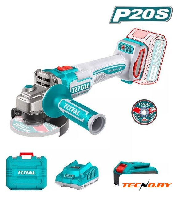 Комплект поставки | - Угловая шлифмашина - 1 шт.- Боковая рукоятка - 1 шт.- Фланцевый ключ - 1 шт.- Аккумулятор TFBLI2002 4,0 Ач - 1 шт.- Зарядное устройство TFCLI2001 - 1 шт.- Отрезной диск - 10 шт.- Инструкция- Кейс |