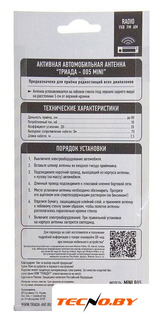 активная, длина антенны: 370 мм, длина кабеля: 2.5 м