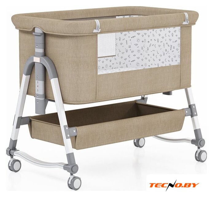 | Дополнительно | Есть карман для мелочей, декоративная тканевая крыша, вентиляционные вставки, кроватка легко перемещается благодаря колесам. |