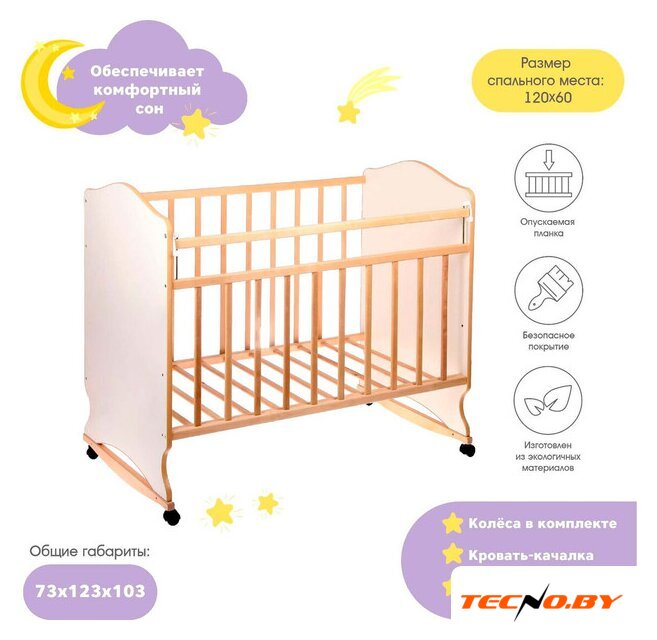 классическая, дерево/ДСП, 2 уровня дна, механизм качания: полозья, опускающаяся передняя стенка