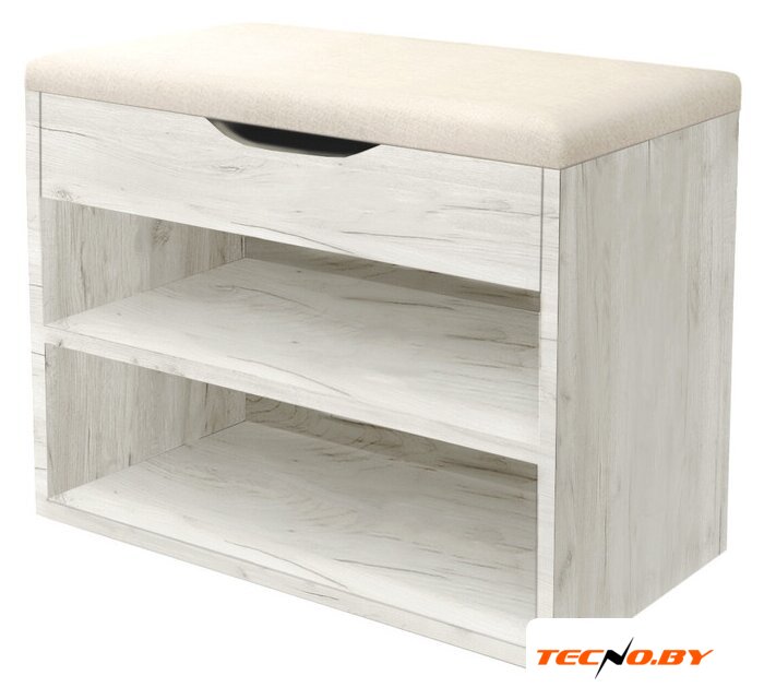 ЛДСП, обивка: ткань, ящик для хранения, полка для обуви, 60x29.6x53.3 см, цвет: белый