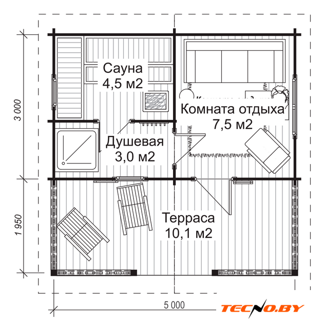 | Особенности планировки | терраса, душевая, комната отдыха |