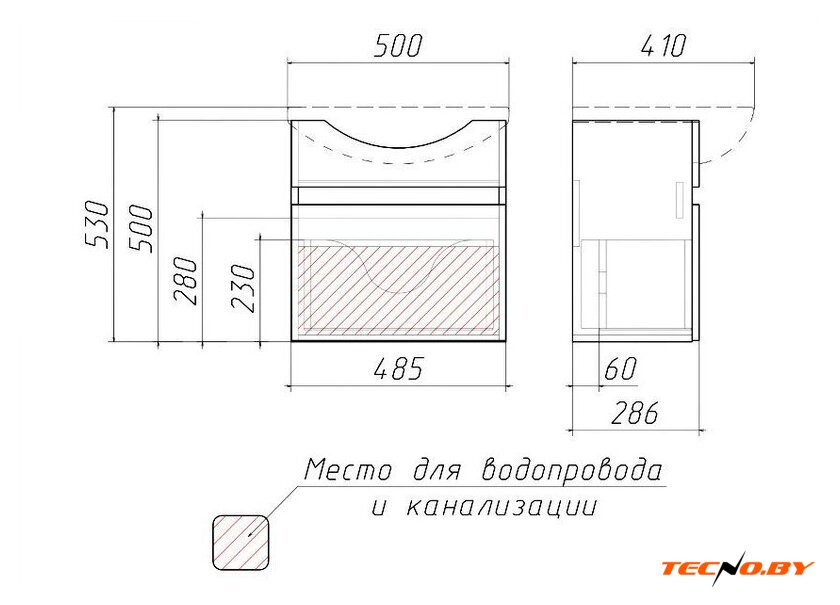 тумба под умывальник, подвесная установка, ширина: 46 см