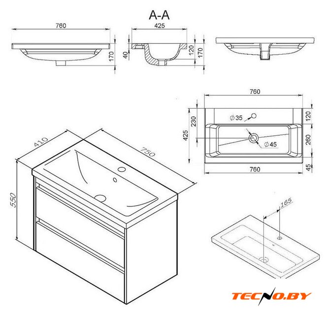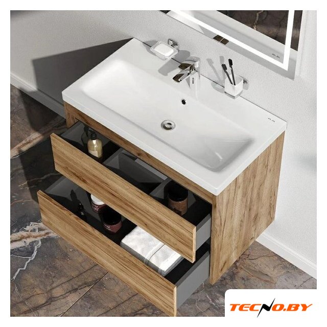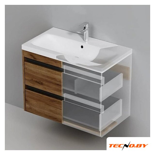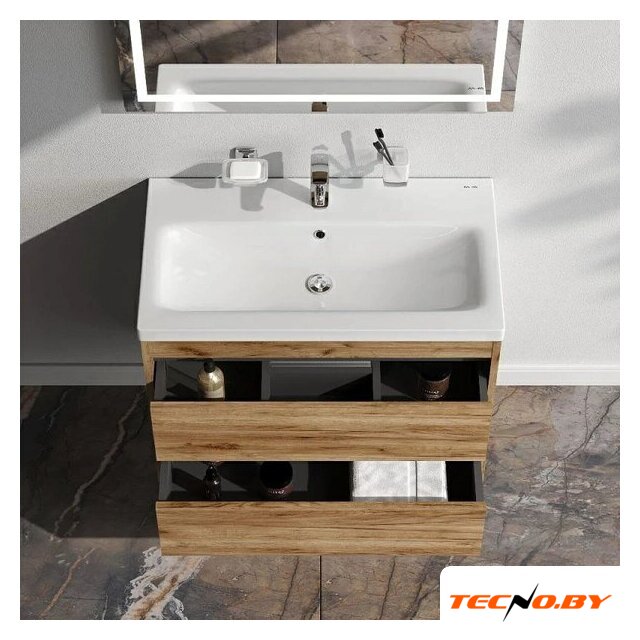 тумба, умывальник в комплекте, подвесная установка, ширина: 76 см