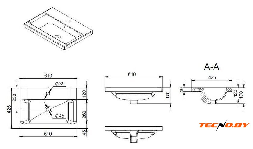 | Установка | подвесная |