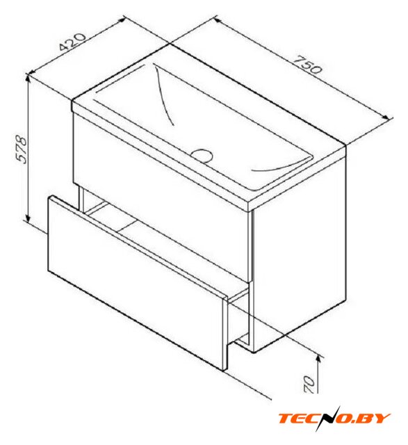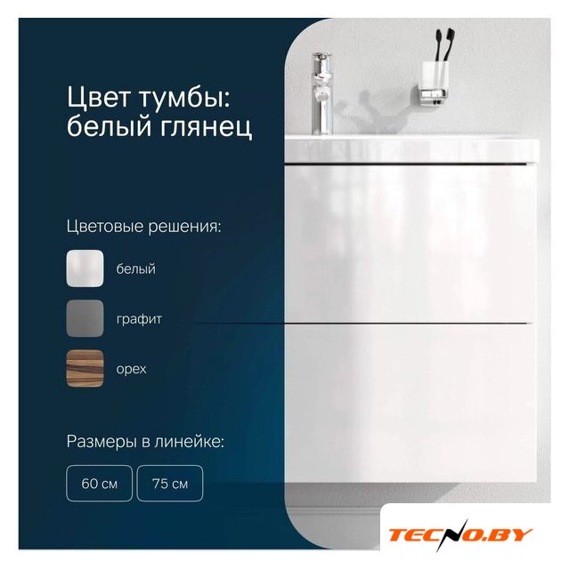 | Под умывальник шириной | 75 см |