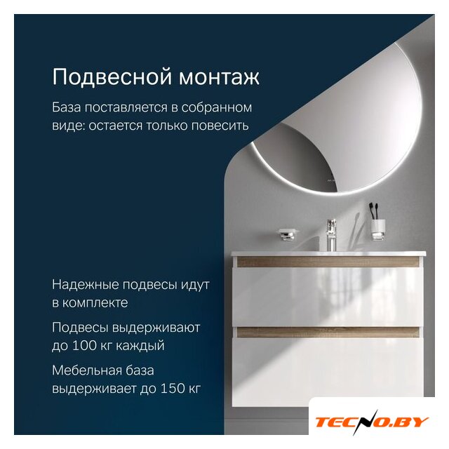 тумба под умывальник, подвесная установка, ширина: 100 см