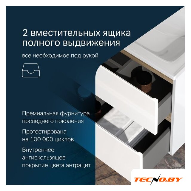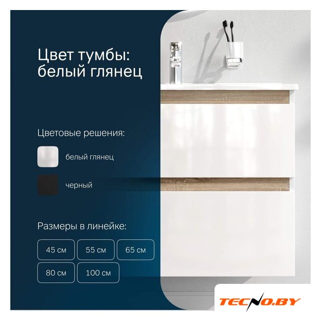тумба под умывальник, умывальник в комплекте, подвесная установка, ширина: 60 см