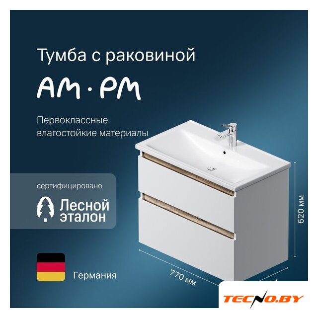 тумба под умывальник, умывальник в комплекте, напольная установка, ширина: 76 см