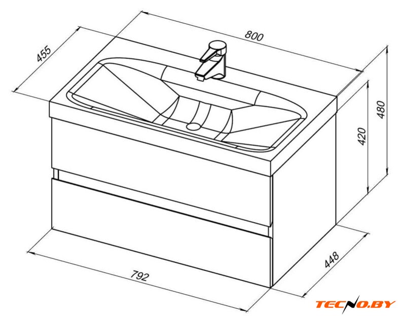 тумба под умывальник, подвесная установка, ширина: 80 см