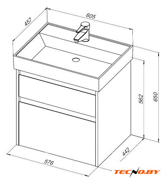 тумба под умывальник, подвесная установка, ширина: 66 см