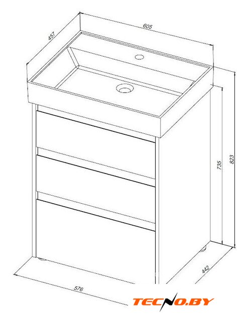 тумба под умывальник, умывальник в комплекте, подвесная установка, ширина: 63 см