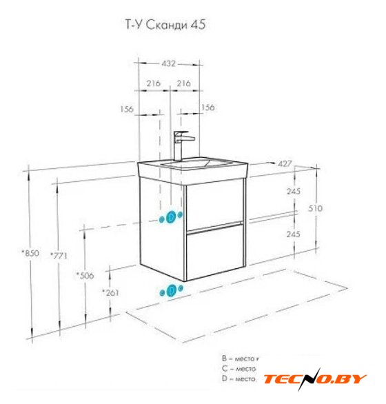 тумба под умывальник, подвесная установка, ширина: 50 см