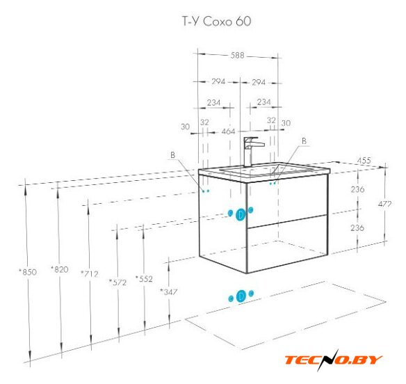 тумба под умывальник, подвесная установка, ширина: 86 см