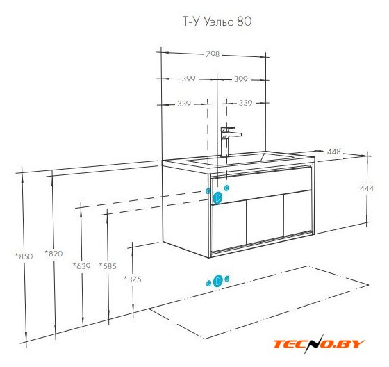 тумба под умывальник/столешница, подвесная установка, ширина: 80 см