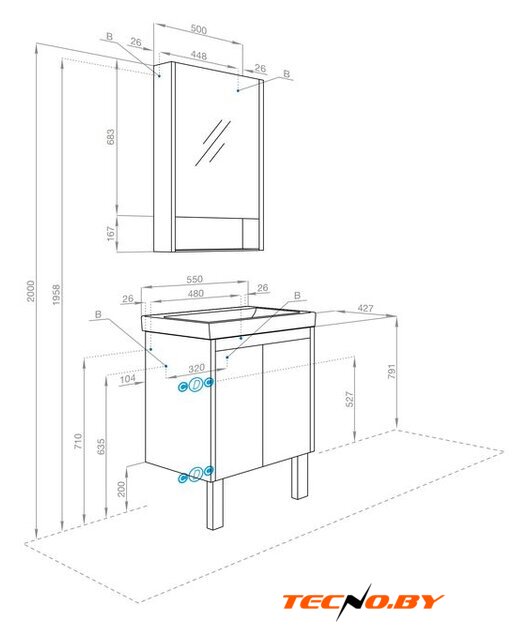 Под умывальник шириной | 55 см |
