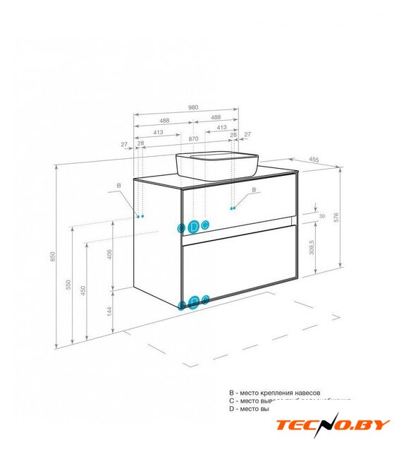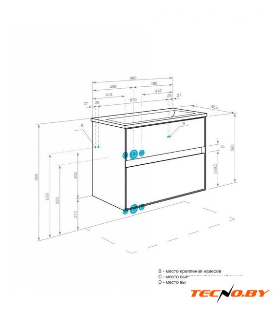 тумба под умывальник, подвесная установка, ширина: 63 см