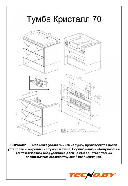 тумба под умывальник, подвесная установка, ширина: 59 см