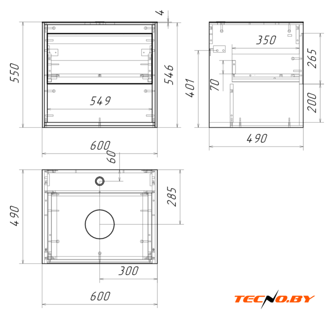 тумба под умывальник, подвесная установка, ширина: 60 см