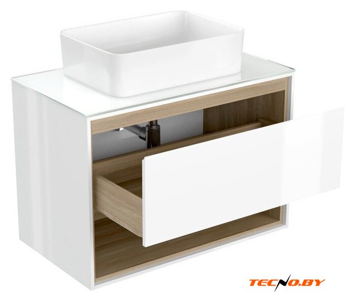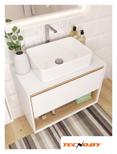 тумба под умывальник, умывальник в комплекте, подвесная установка, ширина: 76 см