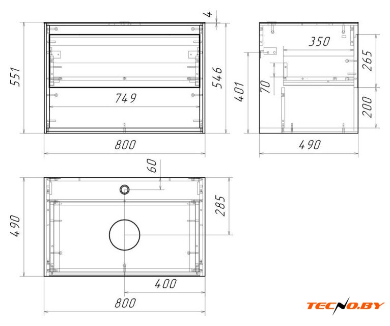 тумба под умывальник, подвесная установка, ширина: 60 см