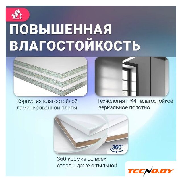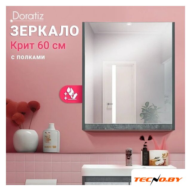 шкаф с зеркалом, с подсветкой, подвесная установка, ширина: 60 см