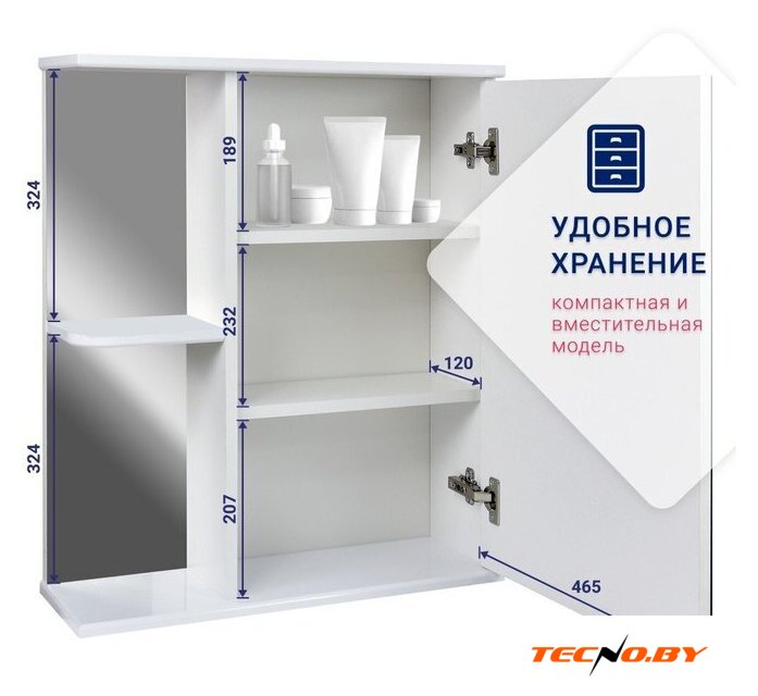 шкаф с зеркалом, с подсветкой, подвесная установка, ширина: 55 см