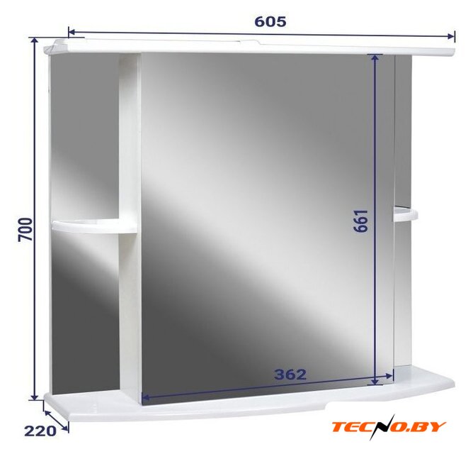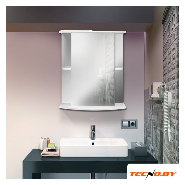 шкаф с зеркалом, с подсветкой, подвесная установка, ширина: 55 см