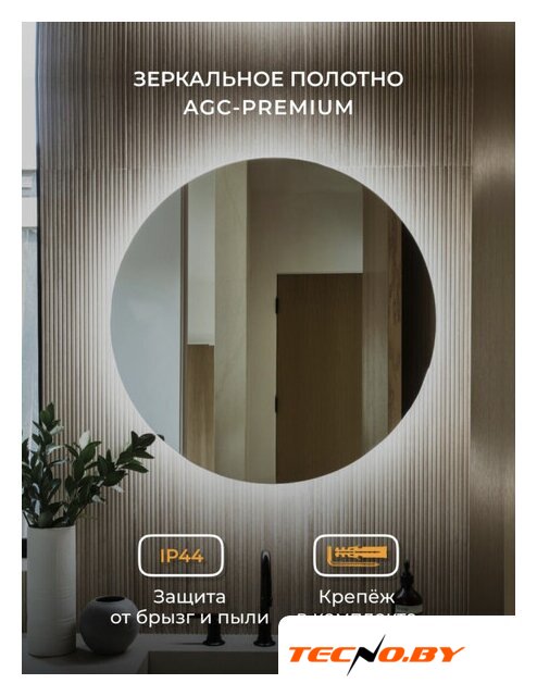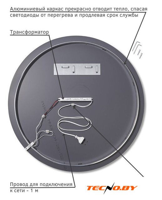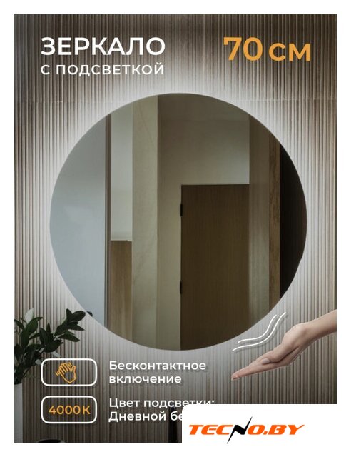 зеркало, с подсветкой, подвесная установка, ширина: 60 см