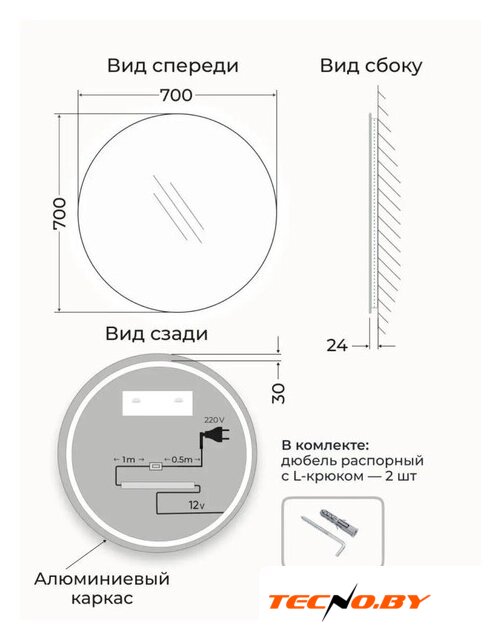 зеркало, с подсветкой, подвесная установка, ширина: 70 см