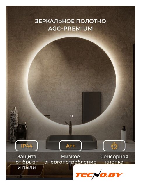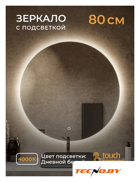 зеркало, с подсветкой, подвесная установка, ширина: 80 см