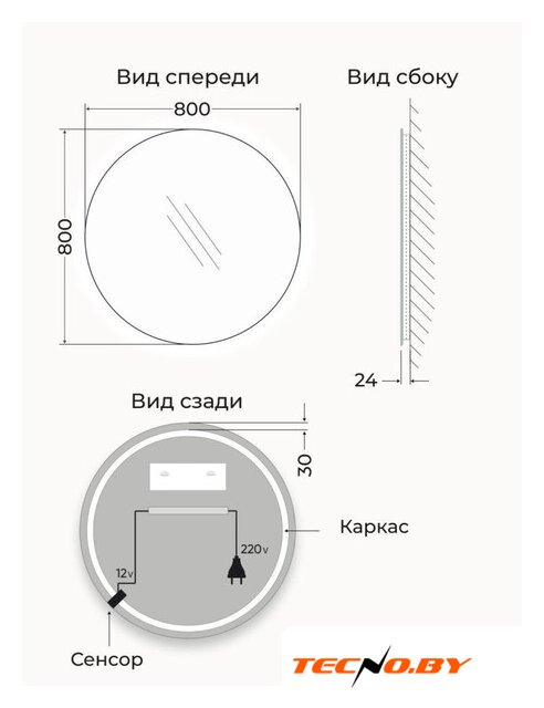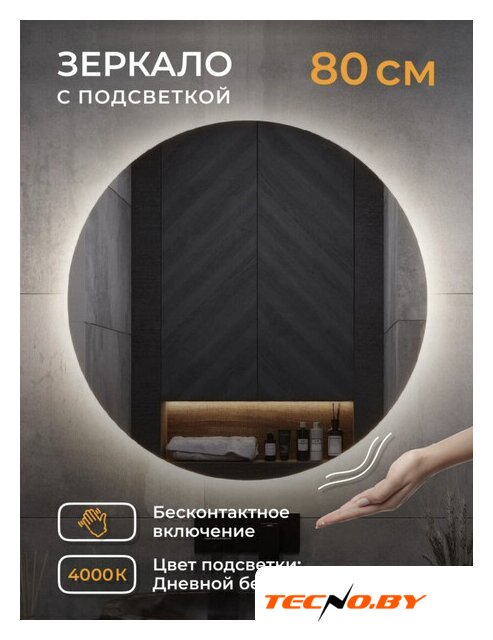 зеркало, с подсветкой, подвесная установка, ширина: 80 см