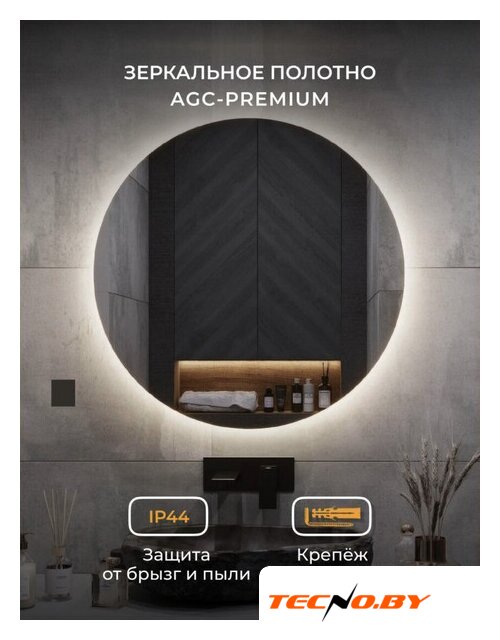 зеркало, с подсветкой, подвесная установка, ширина: 50 см