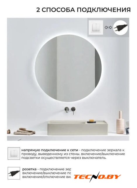 зеркало, с подсветкой, подвесная установка, ширина: 50 см