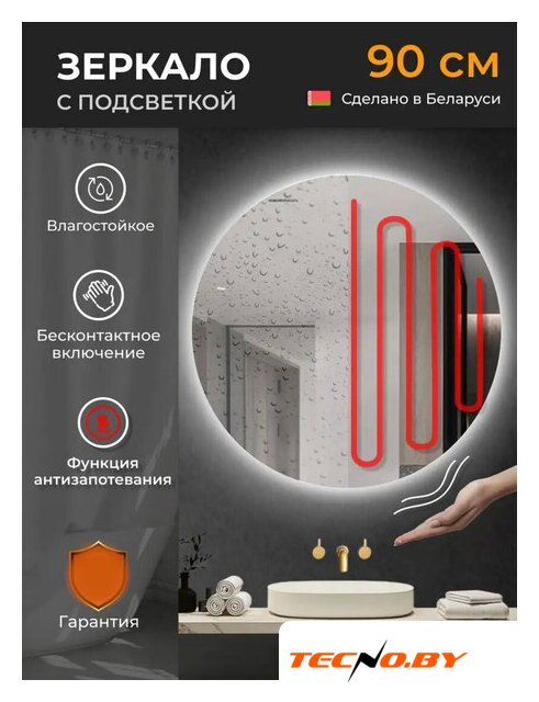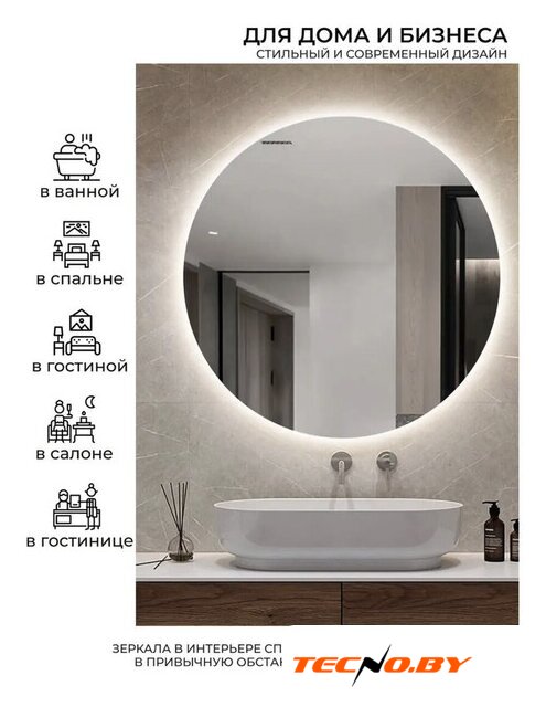 зеркало, с подсветкой, подвесная установка, ширина: 80 см
