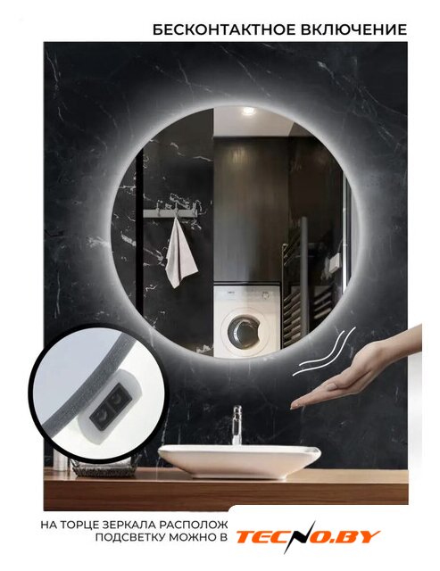 зеркало, с подсветкой, подвесная установка, ширина: 50 см