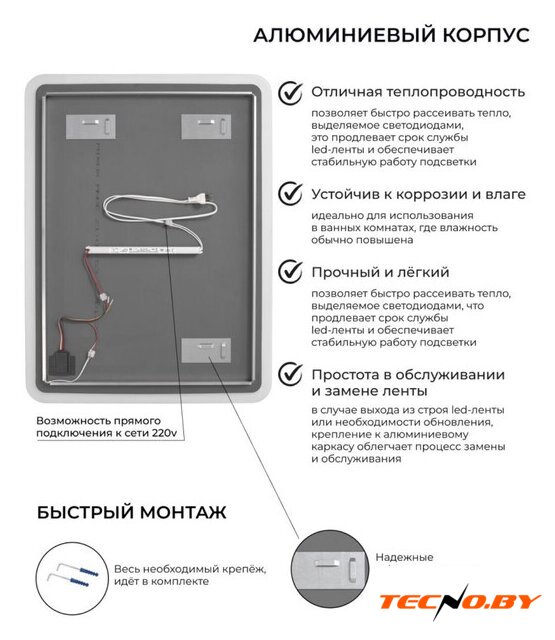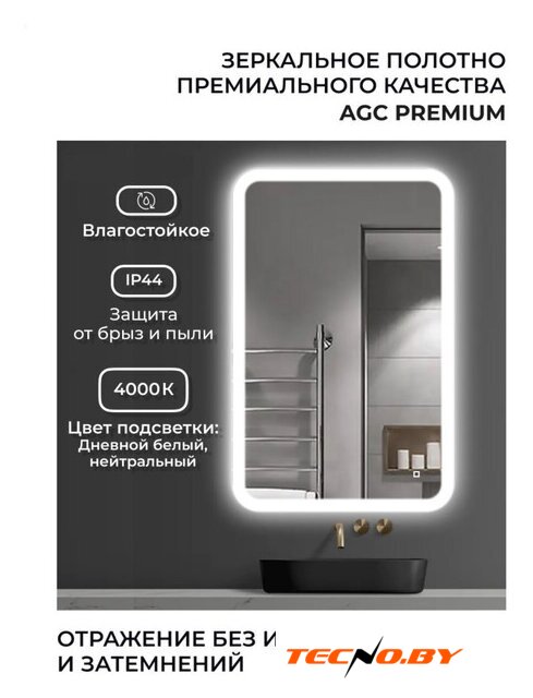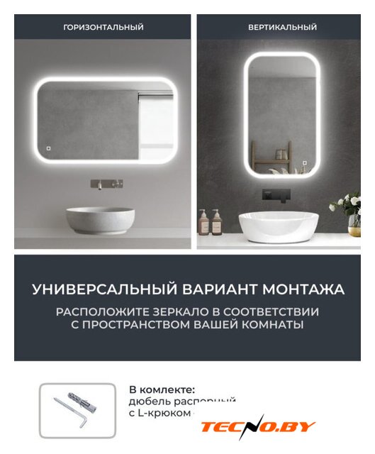 зеркало, с подсветкой, подвесная установка, ширина: 90 см
