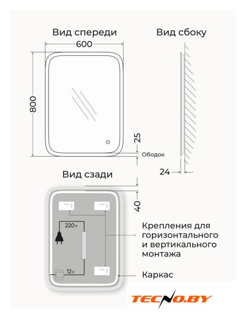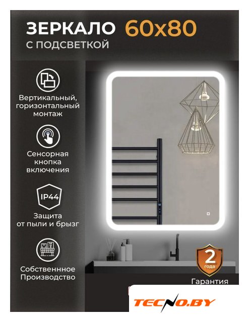 зеркало, с подсветкой, подвесная установка, ширина: 80 см